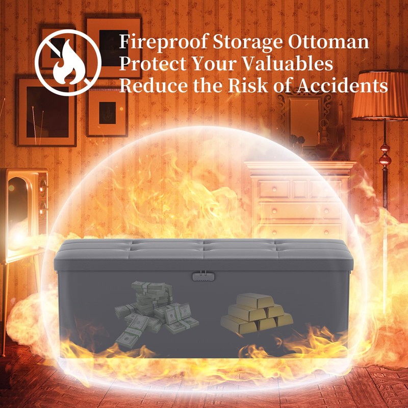 - Fireproof and Water-resistant( 43"X 15" X 15"): Compared with other storage ottoman,our fireproof storage ottoman bench is made of 3 layered non-itchy silicone coated fiberglass which stands up the temperature up to 2200℉.The Storage Chest is fireproof and waterproof,which can effectively protect your important files in a fire and wet weather. They will further keep your files intact. It has been passed by SGS TEST(UL94 Certified) for a longer life and can be used with peace of mind.