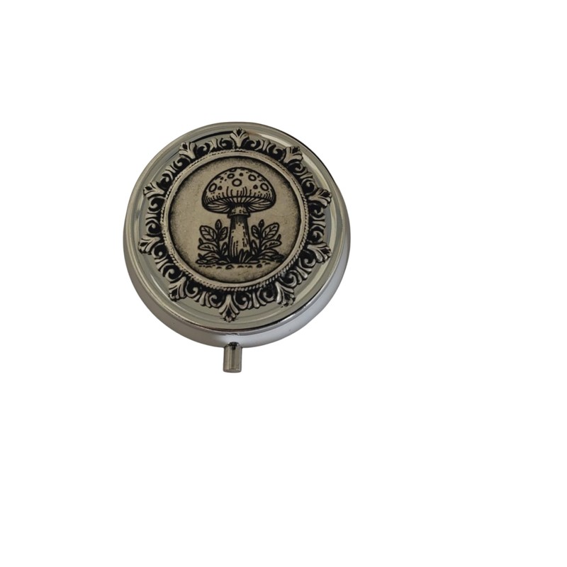Engraved Pillbox - Mushroom - Forestcore - Fairycore - Silver Celestial Mushroom Pill Box