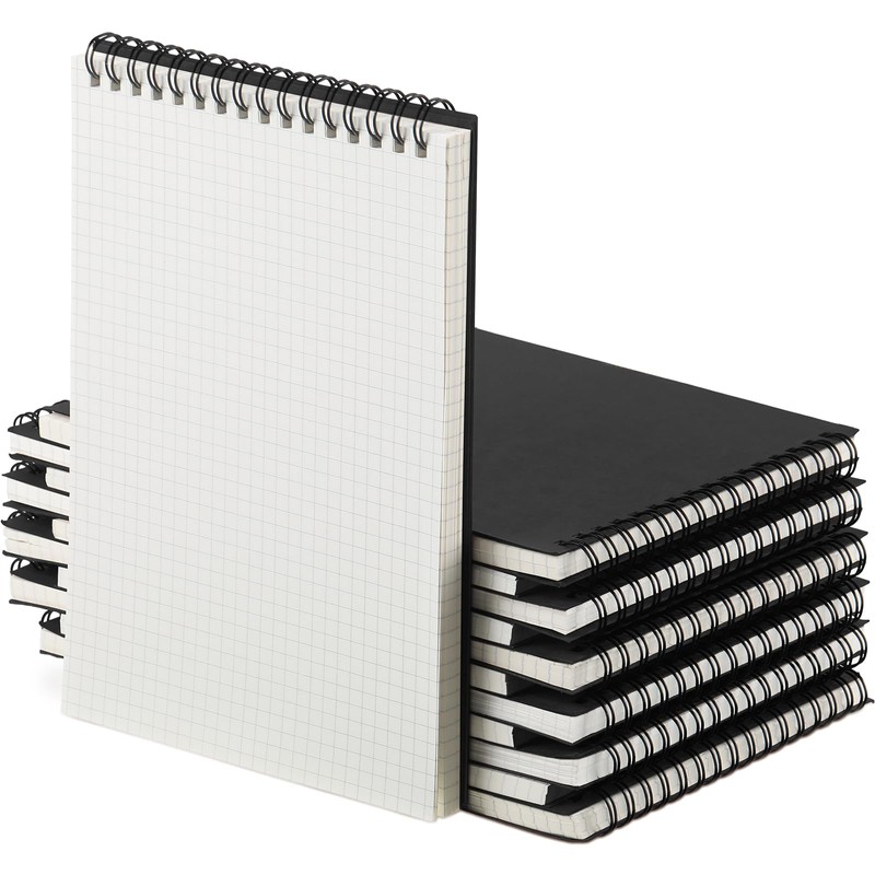Engrowtic Graph Paper Spiral Notepad A5 Top Wirebound Notepad Grid Notebook Steno Pads Memo Notebook Grid Paper 140 Pages for Writing Sketching Drawing Office Supplies(Black,12 Pack)