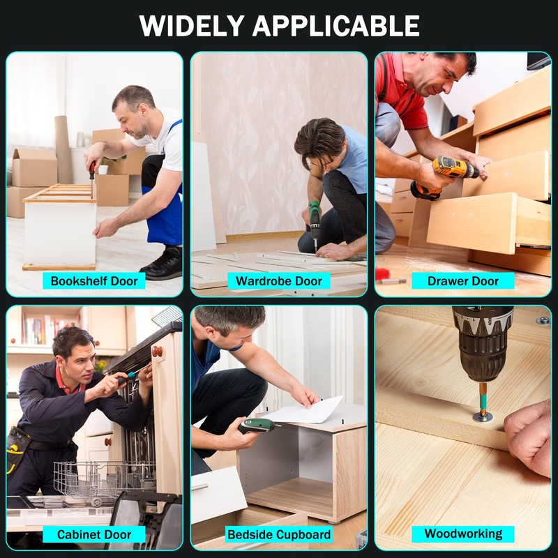 - Work Faster and Professional: ENGYNC metal cabinet jig provides stable and precision drill performance. The shelf pin drill guide for shelf pins can drill 6pcs 1/4 Inch and 6pcs 5mm straight holes one time at 1-1/4 Inch distance for shelves building. All metal door hinge jig make your job faster and save time