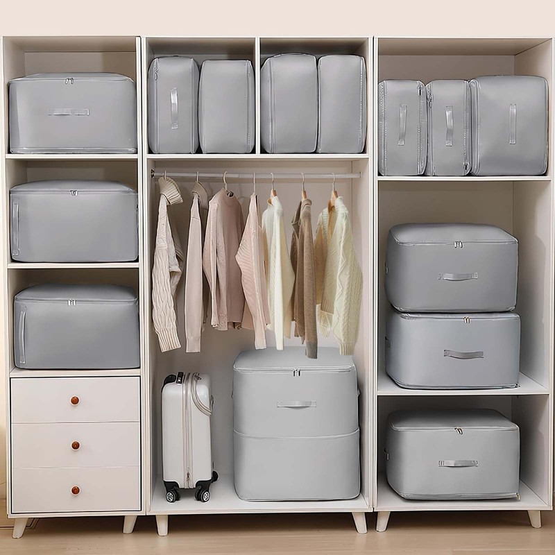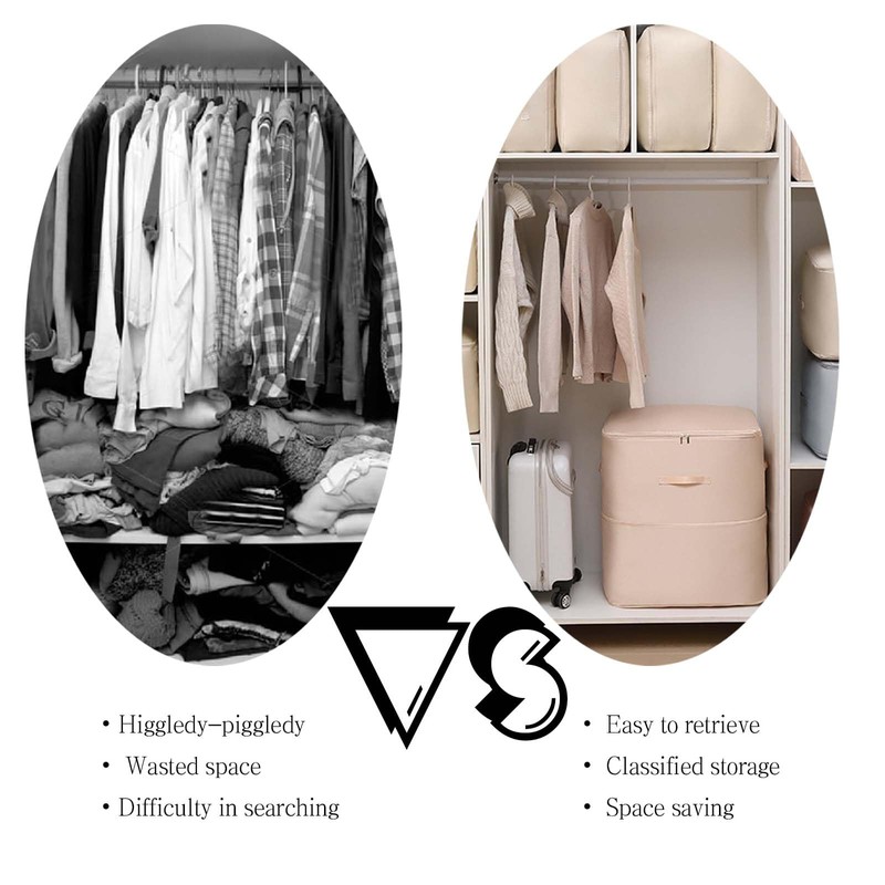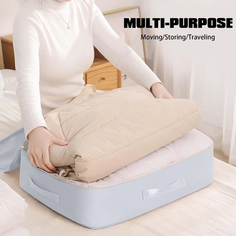 3. The organiser case has a large capacity in which quilts and clothes can easily be stored. The compression design saves space and is suitable for seasonal sorting and changing.