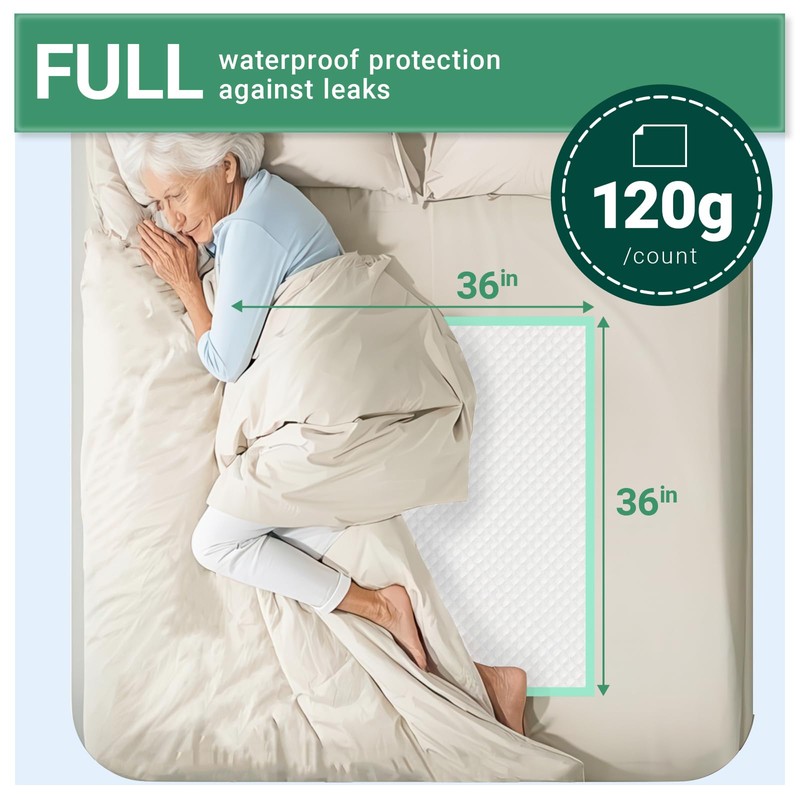 EnjBioMed Eco-Friendly Extra Large Ultra Absorbent Incontinence Bed Pads Disposable Adult 120g (36" X 36"Pack of 50),Heavy Duty with Adhesive Strips Chux Pads
