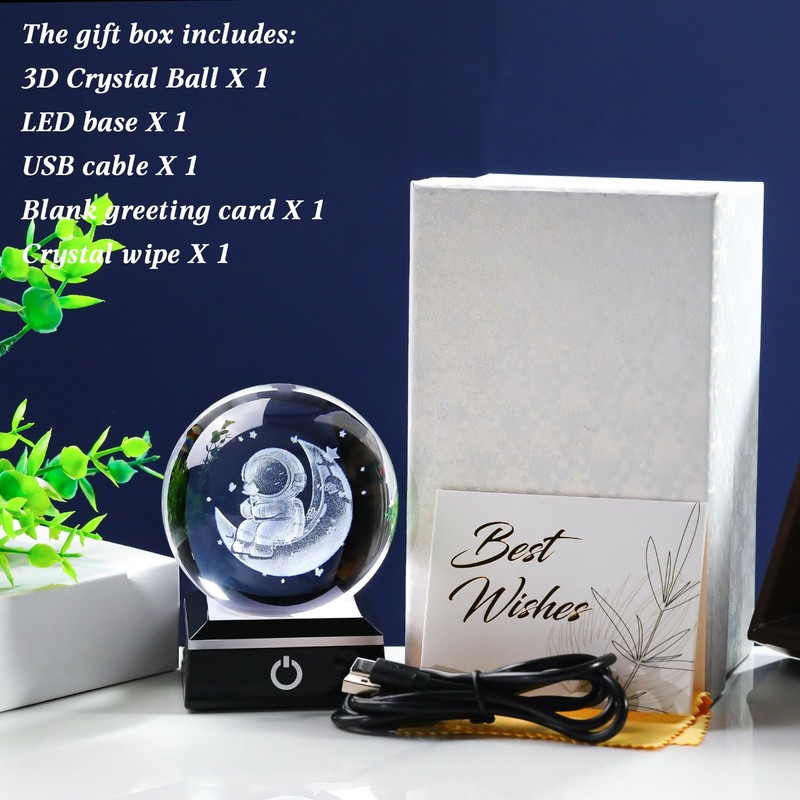 - Mesmerizing Solar System Design: This 3D laser-etched crystal ball features a stunning depiction of the moon, stars, Astronaut, rose, and celestial elements. Perfect as a space globe, desk ornament, or unique snow globe for kids and adults, it adds a touch of romantic to any room.