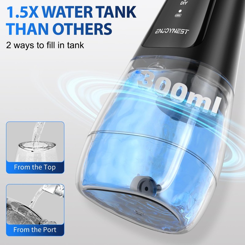 - đŠăLarge Water Tank & High-Capacity BatteryăThe ear wax remover has a large 300ml water tank that can provide enough water for a single ear cleaning session. The ear wax removal kit has a Type-C data line and a 2500mAh battery, providing up to 3 hours of continuous use on a full charge. The back of the tank is for easy refilling and a water collector is for hassle-free wastewater disposal.