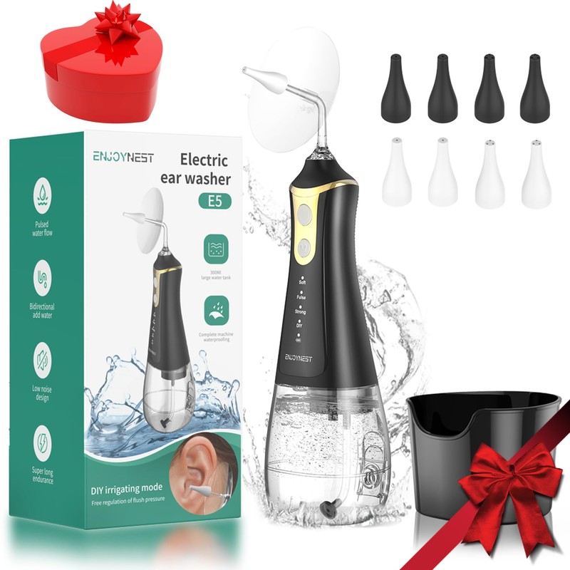 EnjoyNest Ear Wax Removal, Safe & Effective & Temperature Sensor, Ear Cleaner Kit with 4 Modes, Earwax Irrigation Flushing System for Buildup, Cleaning Tool with Basin and 8 Tips, Black