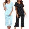ENJOYNIGHT 2 Packs Womens Cotton Pajama Sets Short Sleeve Top with Capri Pants Sleepwear Summer Pjs (Large, Fly+Bcat)