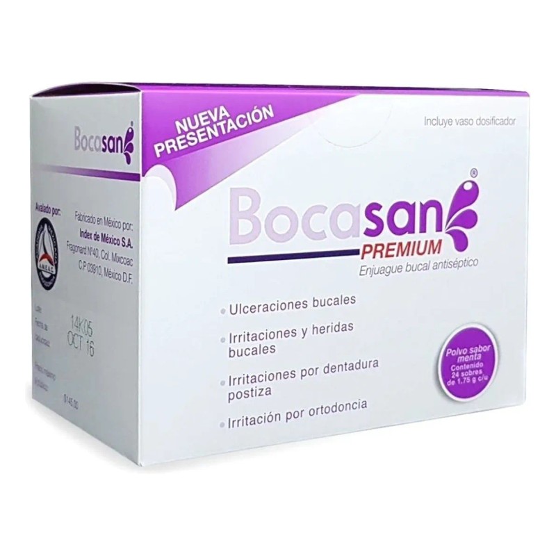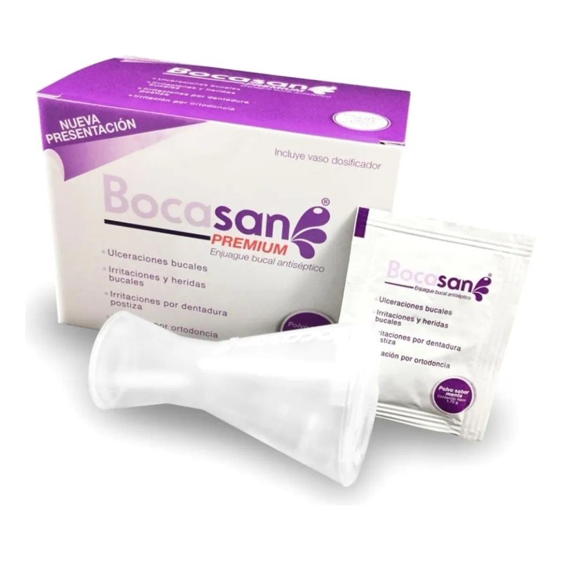 Ideal para quienes usan ortodoncia o dentaduras postizas, Bocasan Premium es un aliado eficaz contra las ulceraciones bucales y la irritación, brindándote alivio y confort en cada uso. Simplemente disuelve el polvo en el vaso dosificador incluido, enjuaga y disfruta de una boca revitalizada sin necesidad de enjuagar nuevamente. 💧🦷