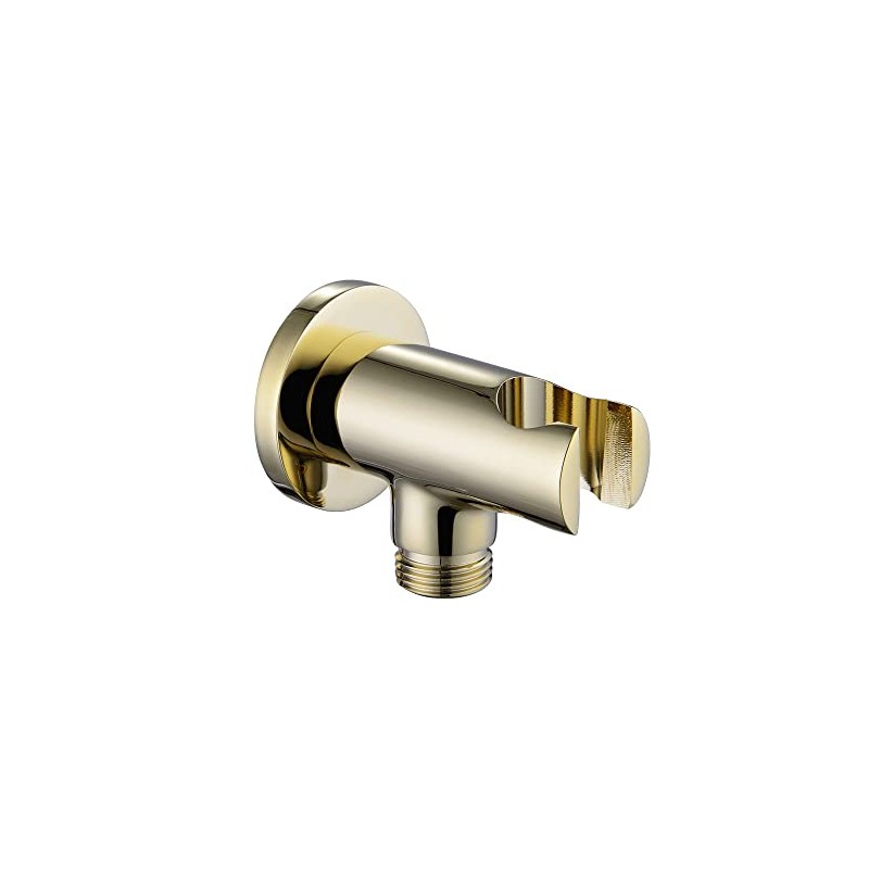 ENKI, O05, Shower Outlet Elbow with Holder, English Gold Shower Handset Parking Bracket with Outlet, Wall Elbow, Polished Gold
