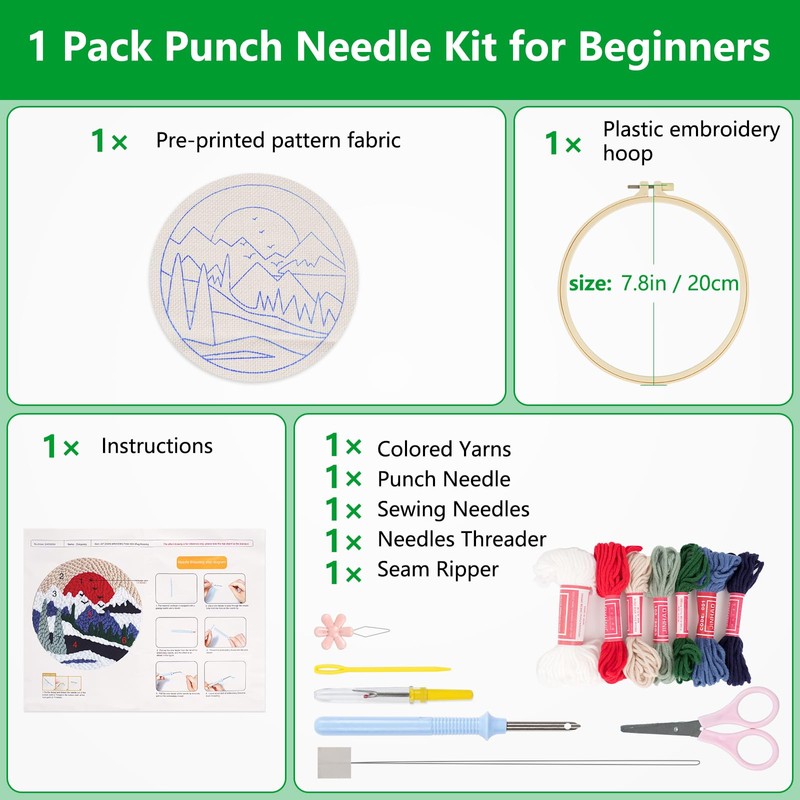 - [Designed for Beginners] Unleash your creativity with our Enkor punch needle kit, perfect for beginners.This all-in-one needle punch kit includes everything you need to start your punch needle embroidery journey
