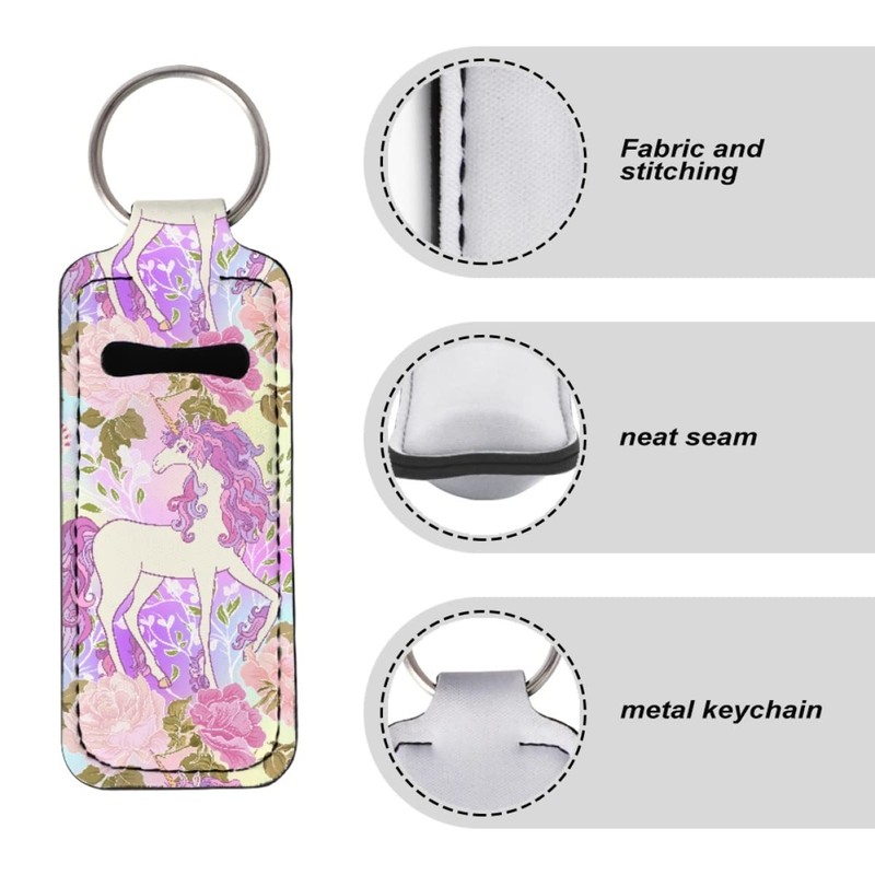 ENLACHIC 2Pcs Unicorn Print Chapstick Holder Keychain Clip-on Lip Balm Holder Chapstick Sleeve Pouch Lipstick Holder Keychain for Women Girls,Unicorn Flower