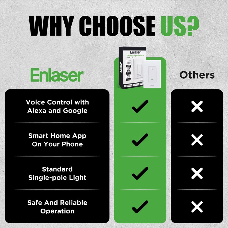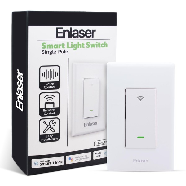 Enlaser Smart Light Switch, Single Pole, Voice/Remote Control, Easy Installation, Compatible with Alexa and Google Assistant, Neutral Wire Required