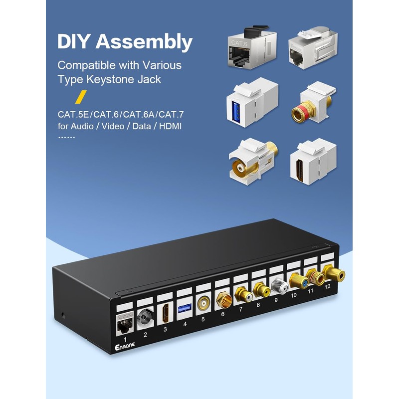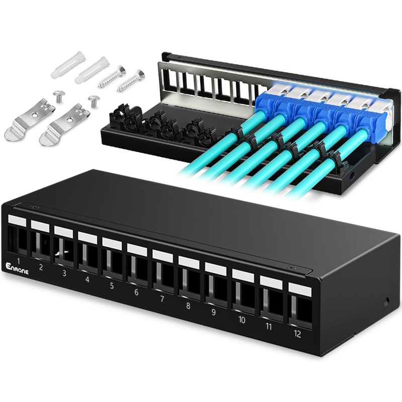 Enmane Patch Panel 12 Port Blank Keystone Patch Panel STP&UTP Compatible with LC/SC/ST/FC/USB/HDMI Keystone Jack for Desk Mount& Wall Mount