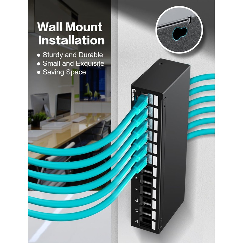 • Easy Installation: The 12 port patch panel supports desk mount installation, allowing users to easily fix it to a desk or other flat surfaces. It is perfect for use as a termination box in home or office networks, with a simple and straightforward installation process.