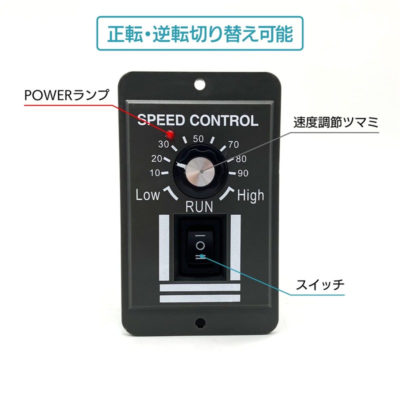 - Can be switched between forward and reverse directions. It also features adjustable speed and is easy to install
