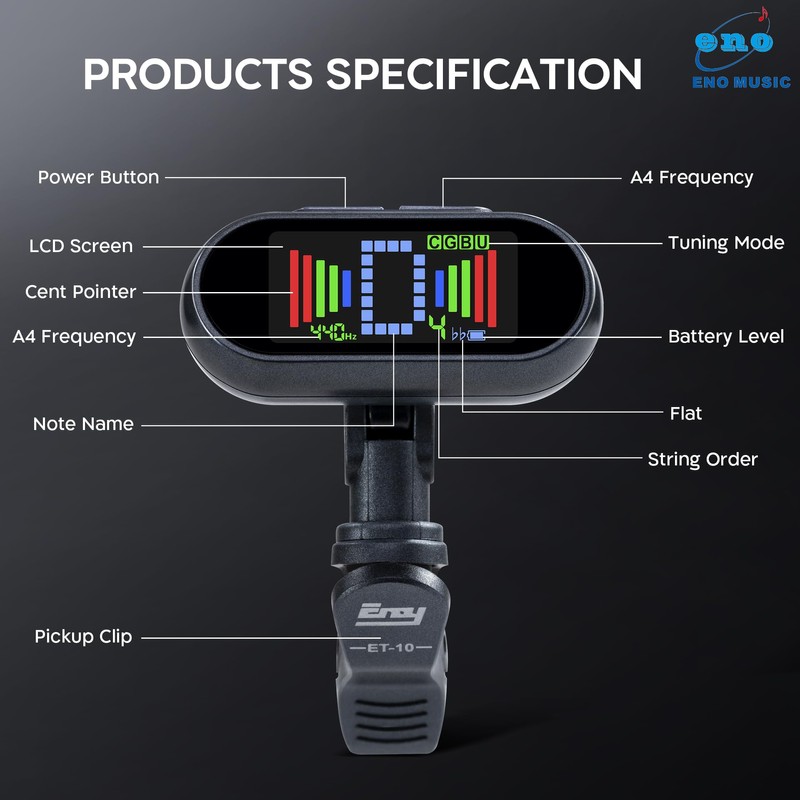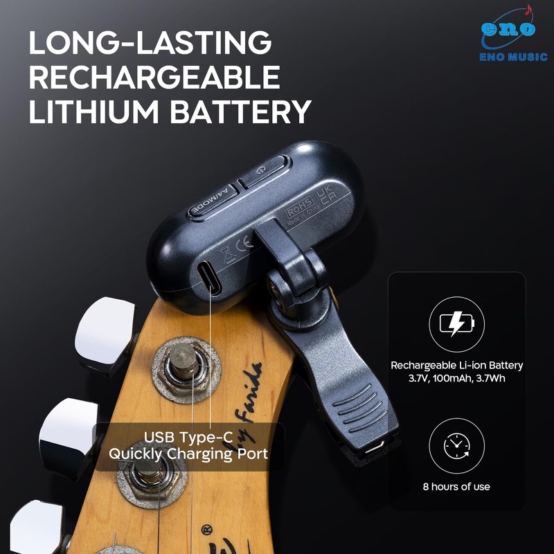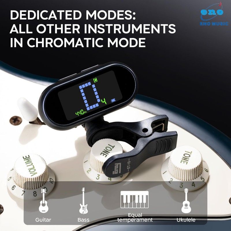 ENO MUSIC Rechargeable Clip-on Tuner for Guitar Bass