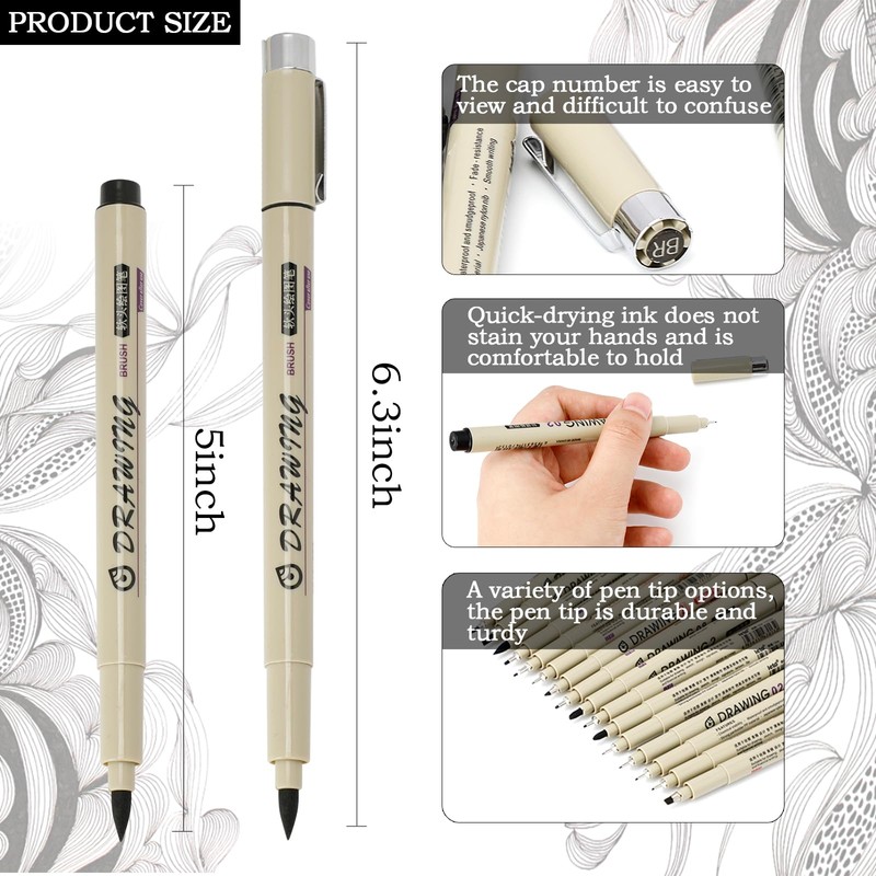 - 【VERSATILE BRUSH TIPS】The brush-like pen tips create strokes in an array of widths from 002 (0.25mm) to 08 (2mm) for outlining, sketching, calligraphy and precise technical drawings.