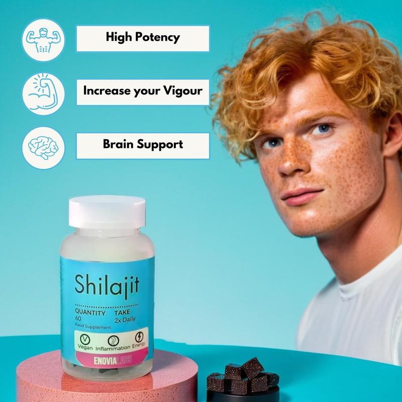 Enovia Labs Shilajit Gummies - 60 Count | All-Natural Energy Boosting Gummy | 85+ Essential Minerals | Rich in Fulvic Acid | High Potency Shilajit Gummies for Men | Vegan, Non-GMO | Pure Himalayan Shilajit