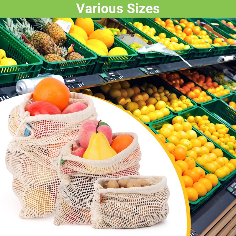 - 【Multipurpose】These reusable storage bags are ideal for farmers markets, fruit and vegetable storage, storing grains and legumes, fruit hammocks, or onion and potato storage. Also they are ideal as reusable snack bags for lunches, beach trips, camping, home organization, and even laundry or suitcase organization while traveling.