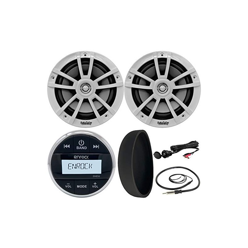 - PACKAGE BUNDLE INCLUDES: Enrock EM856 Gauge Mount Bluetooth Receiver, 2x Infinity 622MW 6.5" 225W White Speakers (Bulk Packaging), Radio Cover, 22" Radio Antenna, USB/AUX 3.5MM Interface.