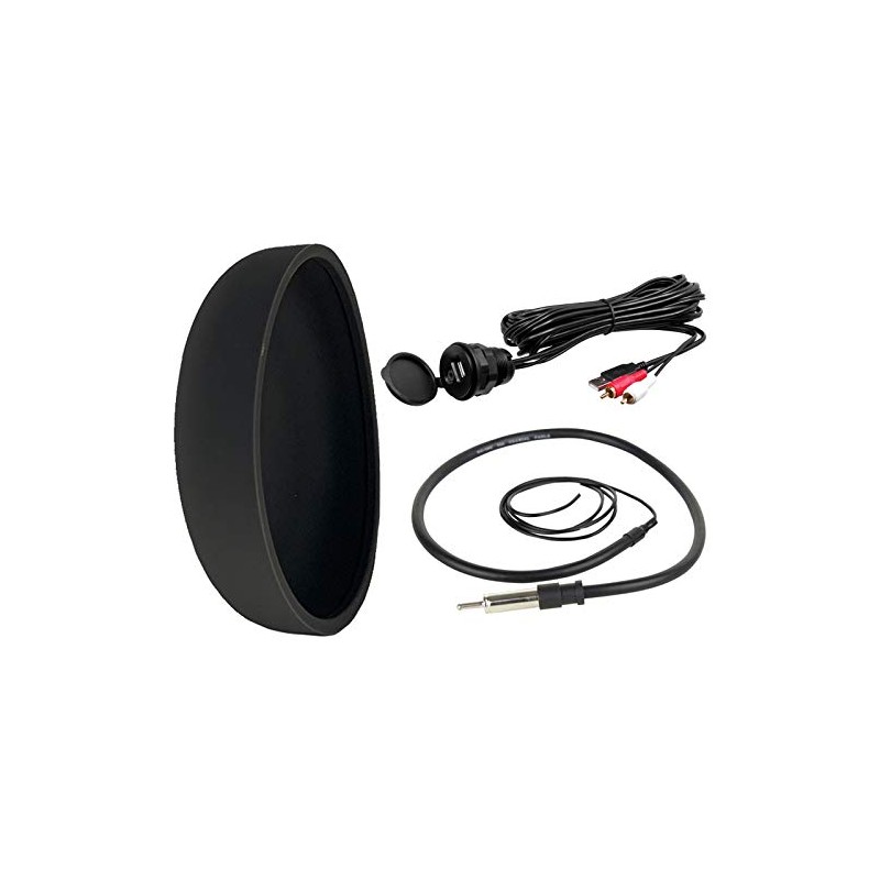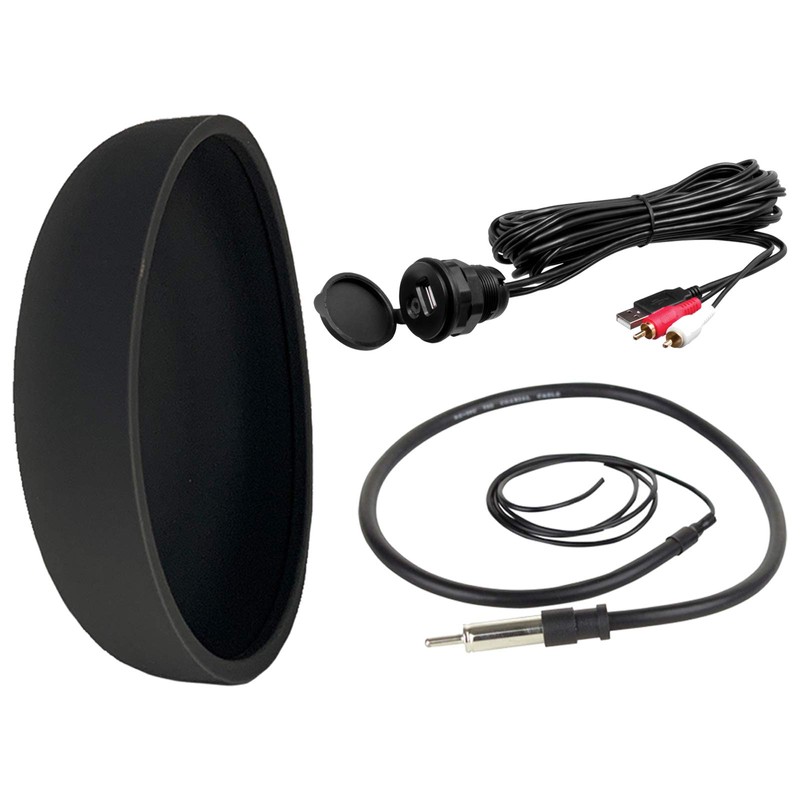 - USB MOUNT/PROTECTIVE COVER: The USB/3.5mm Aux Interface measures 10 feet in length and will convert your AUX inputs to USB, and is UV resistant. The cover included in this bundle helps to protect the stereo against scratching and wear.