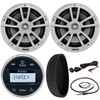 Enrock Stereo Speakers Combo: Bluetooth Gauge Style Marine Boat Cycle Digital Media Bluetooth Receiver + Pair 622MW 6.5" 2-Way Water Resistant Coaxial Speakers + USB Mount + 22" Radio Antenna + Cover