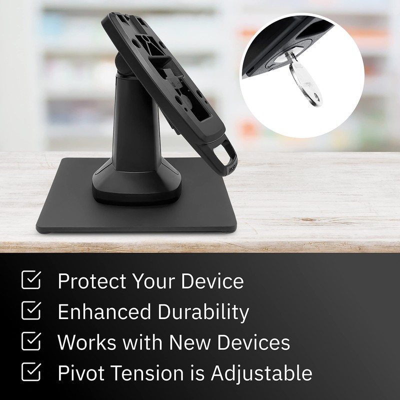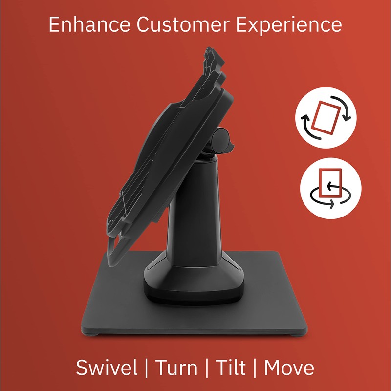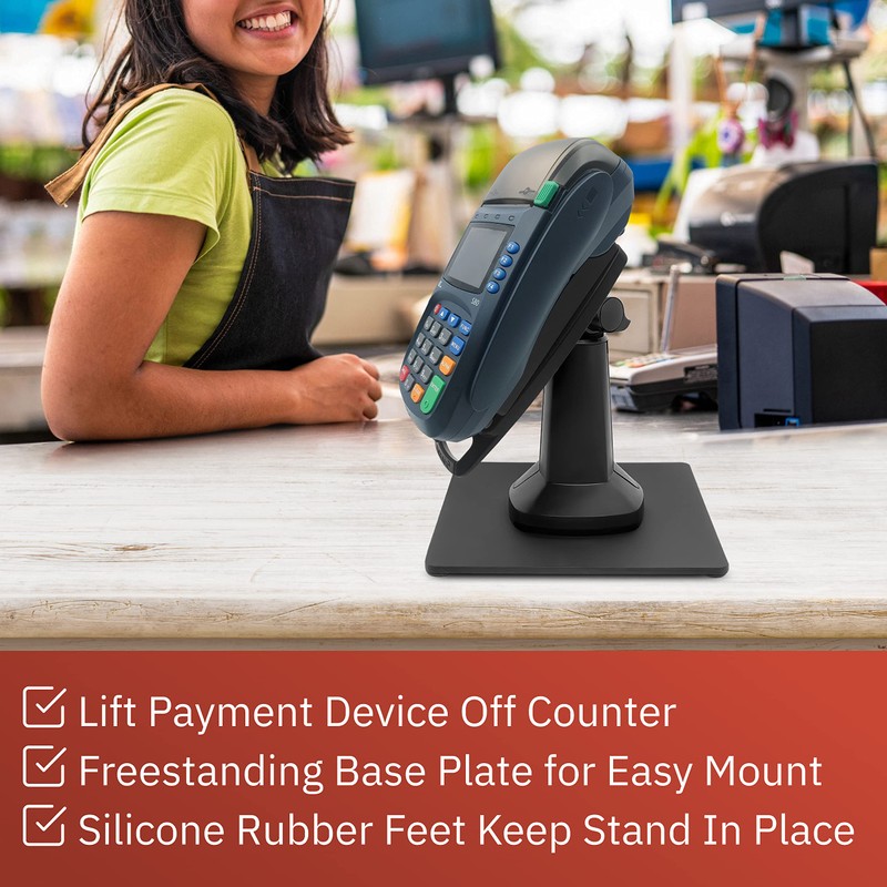 - Freestanding 8'' x 8'' base plate with silicone rubber feet prevents slippage and allows for merchant flexibility; protect and secure your terminal with the option to easily move it anywhere on your countertop; protect device without any damage to countertop