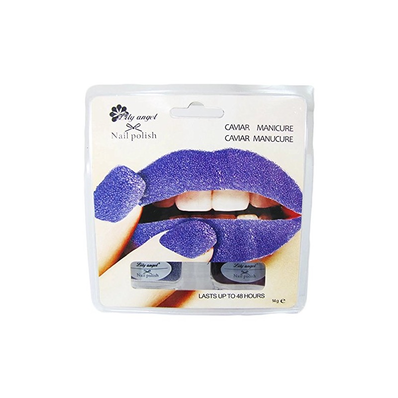 - Ensemble de Vernis Caviar Lily Angel Violet. L'ensemble contient un vernis à ongle coloré, des petites perles (billes) de couleur assortie au vernis, un entonnoir ainsi qu'un petit plateau.