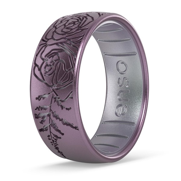 Enso Rings Etched Classic Silicone Rings - Comfortable and Flexible Design - Sugar Plum - Soft Plum/Icy Silver - Size 5