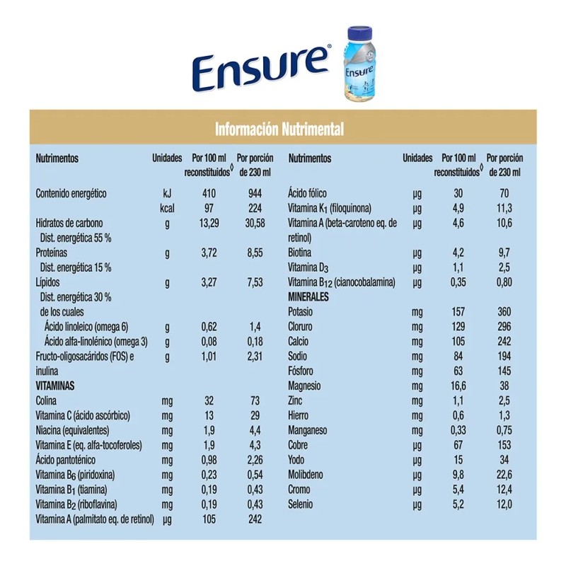 Su suave y delicioso sabor a vainilla convierte cada toma en una experiencia nutritiva y agradable. A diferencia de otros suplementos, Ensure está diseñado para proporcionar nutrición completa y balanceada, cubriendo las necesidades básicas de adultos y adultos mayores con bajo apetito, alimentación incompleta o en procesos de recuperación. 🍦🥤