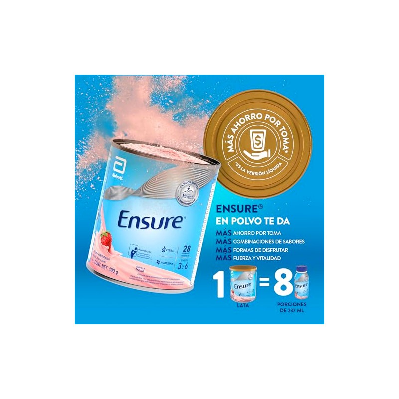 🌟 ⭐ Ensure Clásico - en Polvo Sabor Fresa, 400g, Alimentación Especializada con Vitaminas, Proteínas y Prebióticos, Clínicamente Probado ⭐ 🌟