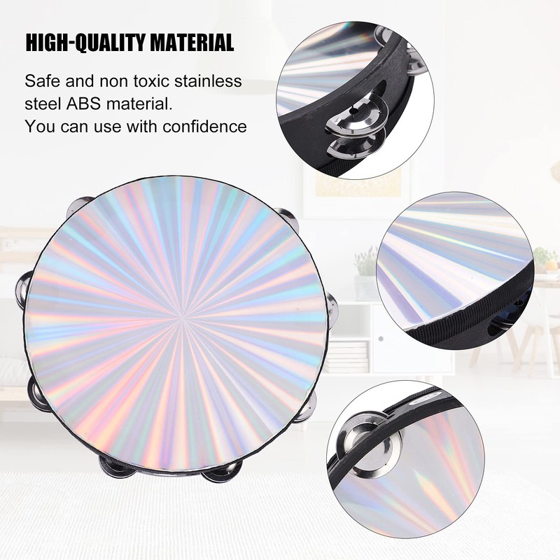 Feature:1. The hand drum is made of safe and stainless steel ABS material, allowing you to use it with confidence.2. The tambourine with double rows of stainless steel bells has a clearer and louder sound.3. The edge of the hand drum is polished and chamfered to prevent you from being scratched.4. The drum appearance is colourful and beautiful, and it has a shiny effect under different viewing angles.5. The tambourine is of the right size and is easy to hold in your hand, allowing you to take it with you and enjoy the fun of music at any time.Specification:Item Type: Hand Held DrumColour: MulticolorMaterial: Stainless Steel ABSSize: Approx. 25.5 x 25.5 x 5.5cm / 10 x 10 x 2.2in Package List:1 x Tambourine