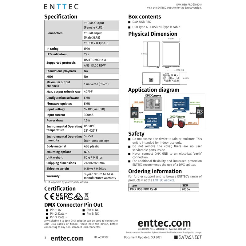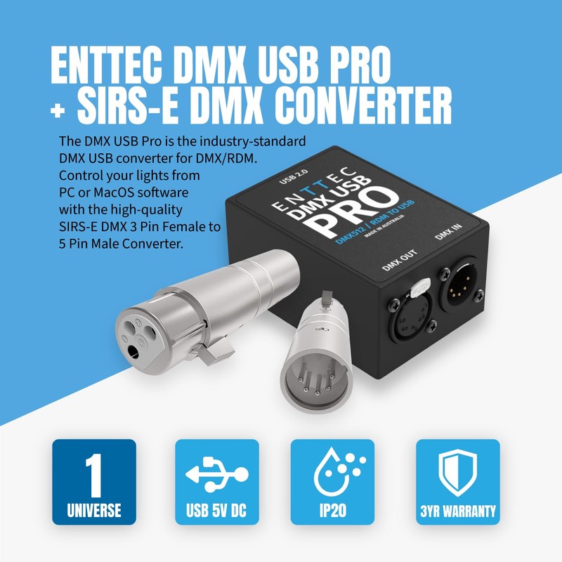 Enttec DMX USB Pro 70304 Lighting Interface & SIRS-E 70029 5P Male to 3P Female Connector (Adapter) - Bundle …