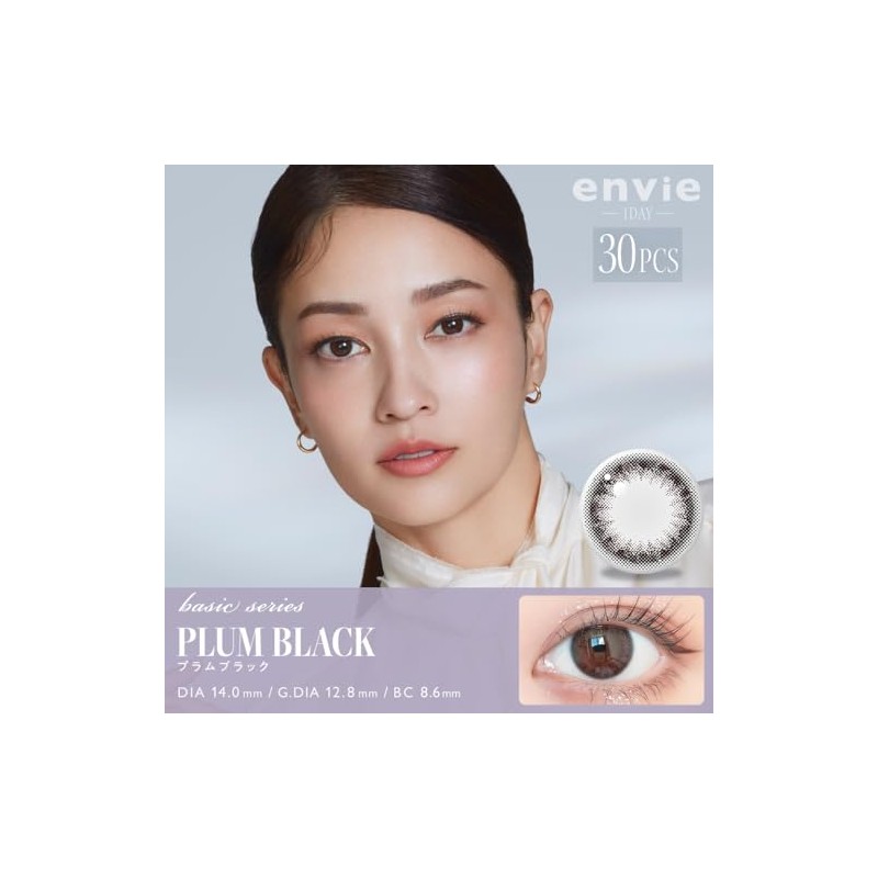 カラコン アンヴィ envie 1day 【プラムブラック】30枚入り UVカット カラーコンタクト ワンデー 度あり 度なし 14.0mm(プラムブラック/-7.50)
