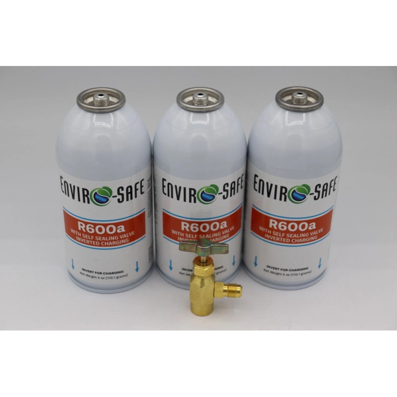 Enviro-Safe R-600a Refrigerant with 7/16" Self Sealing K28 6 oz , 3 cans/tap