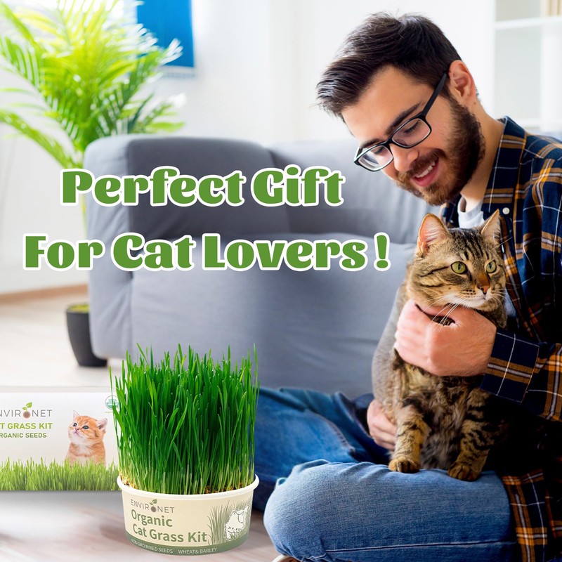 Environet Cat Grass Kit for Indoor Cat, Organic Grass Growing Kit with Seeds, Soil and Planting Tools, Quick Germination, Perfect for Beginners