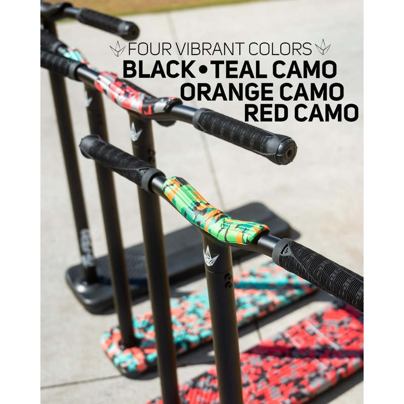 • ENGINEERED FOR DURABILITY & STYLE: Featuring our signature Spring Back Technology, a premium aluminium two-piece bar, safety bar pad and Envy TPR V2 handgrips, this training scooter's design keeps it lightweight and strong especially when compared to a trampoline scooter, while also looking stylish, available in black, and 3 unique camo colorways
