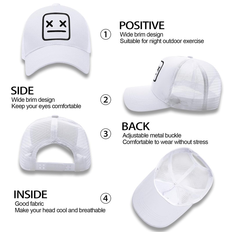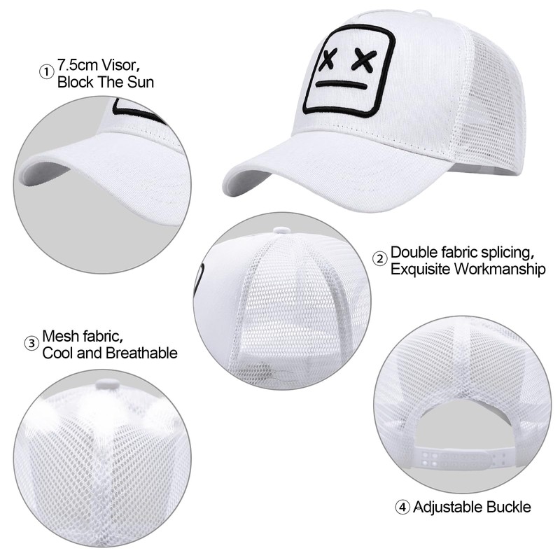 Enwokran Baseball Cap Men's Quirky Bizarre Embroidery Hats Unisex Hip Hop Trucker Caps Adjustable Mesh Back UV Protection Sports Travel Outdoor Sun Protection Hats Baseball Cap, White