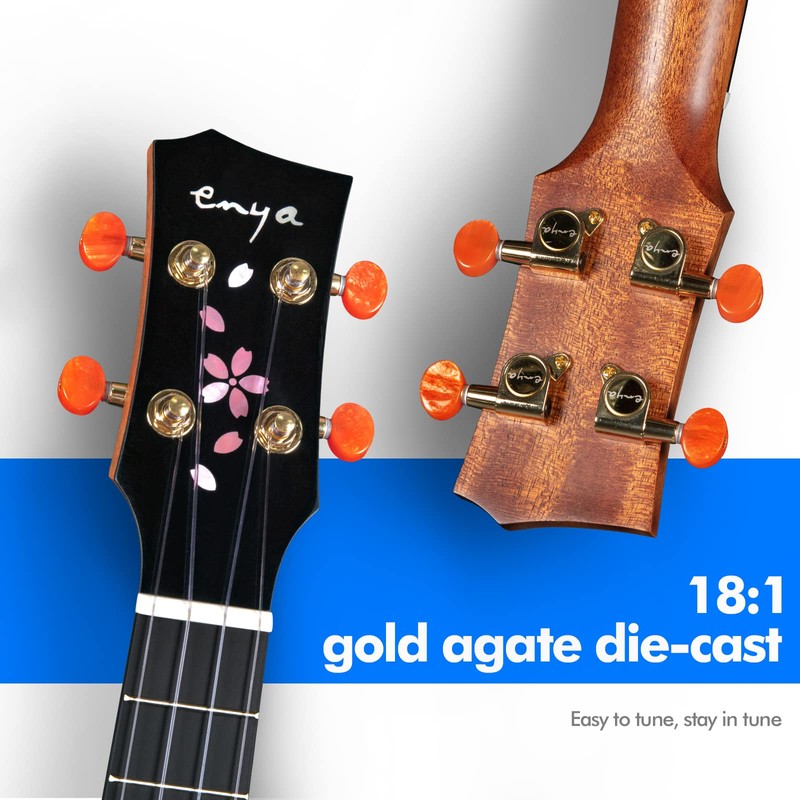 - ♫ 1:18 gold agate die-cast : (rather than poor quality brass-plated zinc alloy); Finer and more stable tuning; Ensures the ukulele the best Intonation, stays in tune for longer times.