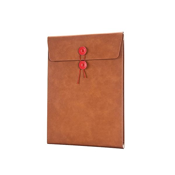 - STYLISH ATTRACTIVE: This leather envelope folder surface made by PU leather which waterproof and easy to take in hand or in your backpack. Bright color envelope folder has a sleek fashion design style that's a great decorative compliment in your office or home.