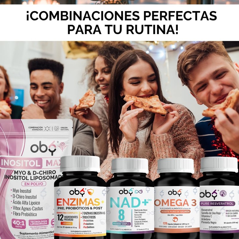 Enzimas digestivas + Probioticos + Prebioticos + Postbioticos | Fórmula Vegana 4 en 1 - Oby Quadribióticos Complex | Suplemento Alimenticio para Hombre y Mujer | 65 capsulas