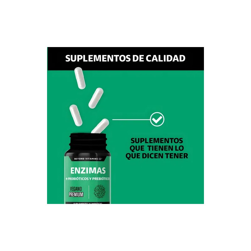 ¿Te sientes pesado después de comer? 😩 ¡Dile adiós a la hinchazón y al malestar! Con Enzimas Digestivas Probióticos Y Prebióticos Vegano Beyond Vitamins, dale a tu sistema digestivo el impulso que necesita. Estas 180 cápsulas sin sabor son tu secreto para una digestión óptima, ¡y son aptas para veganos! 💚