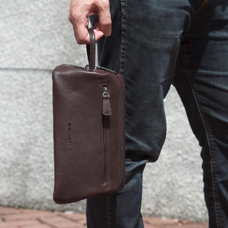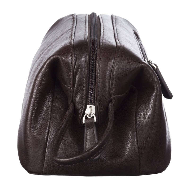 EnzoDesign Brown Cowhide Leather Toiletry Bag