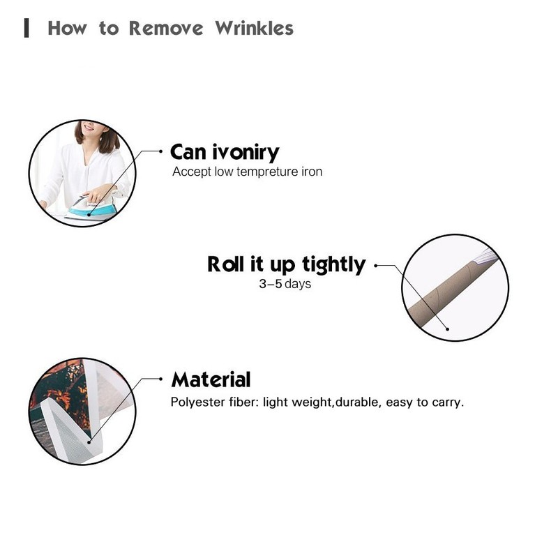 - 4.Not washable, Roll it up tightly with a cylinder for 3-4 days to remove wrinkles
