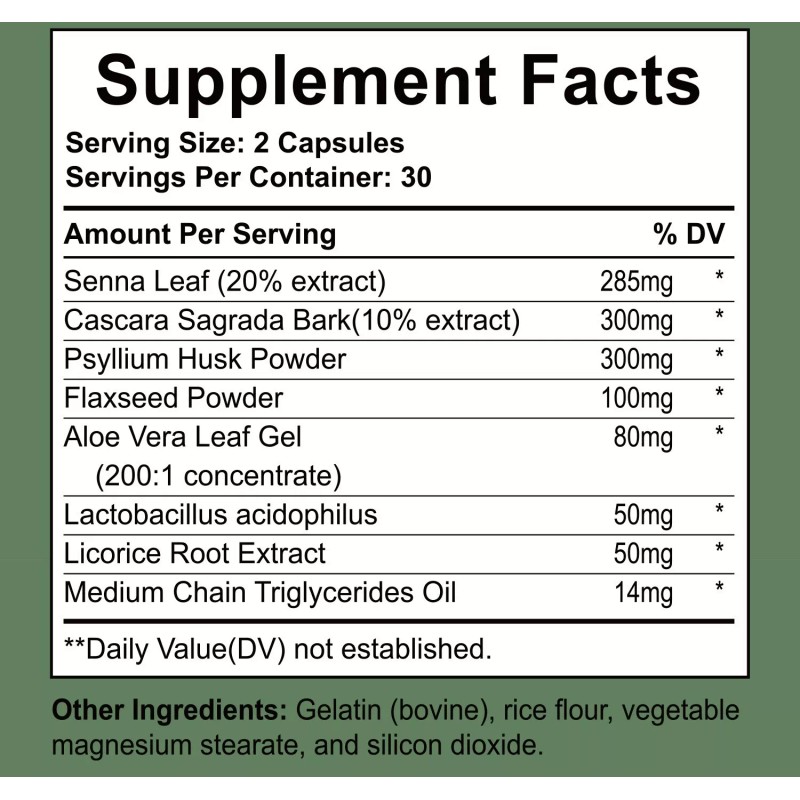- Ingredients: Aloe Vera, Senna, Psyllium Husk