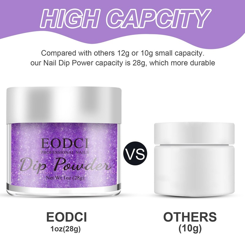 - Dipping powder nails set: Eodci dipping powder has a 1 oz. Large capacity to meet your daily manicure needs. Nail dip powder is odourless, more durable, resistant to chipping and cracking, breathable, waterproof. This professional dip powder gives you a cost-effective nail art experience.