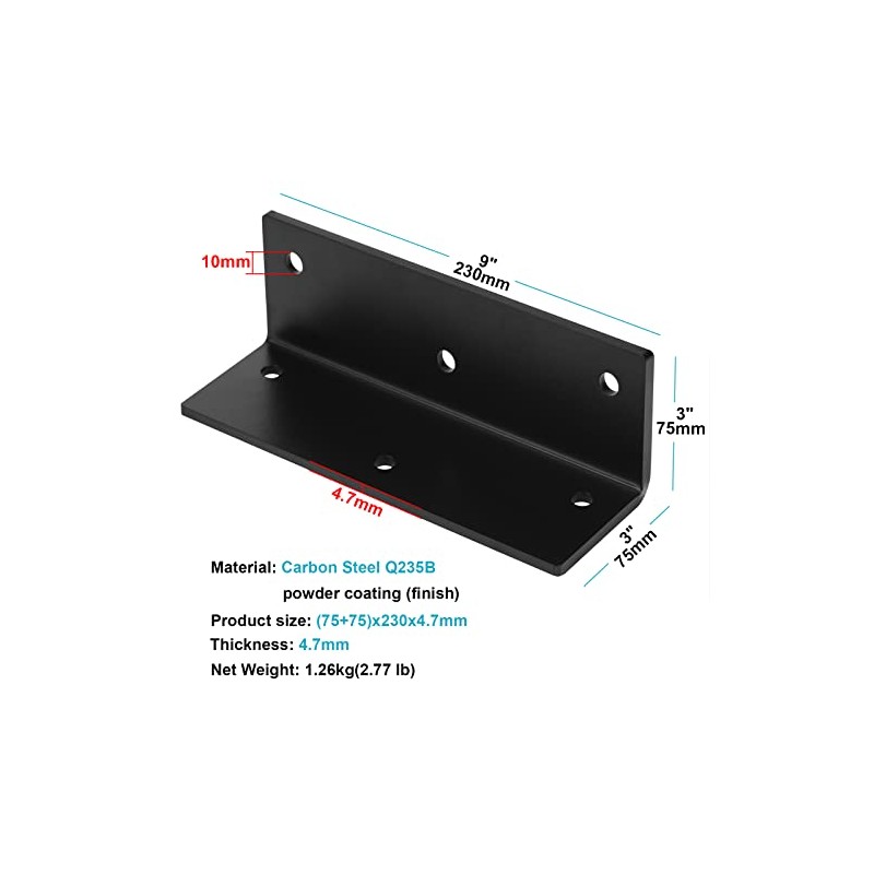 eoere 2 PCS 9" x 3" Heavy Duty Large Angle Brackets, L Corner Brace for 4x4 Wood Post, 3/16" Thickness, Max Load 300 lbs