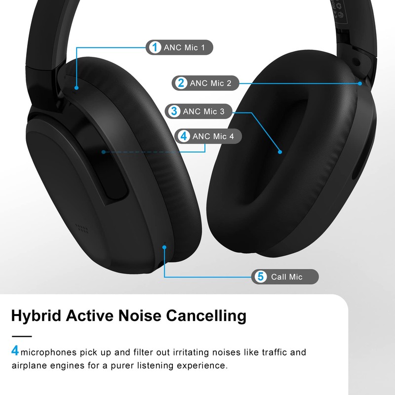 • 40-Hour Playtime: Eonoheadphone 1 active noise cancelling headphones play up to 40 hours of music in noise cancelling mode. Normal mode extends the playtime to 60 hours, while a short 10-minute charge gives you 5 hours of listening.