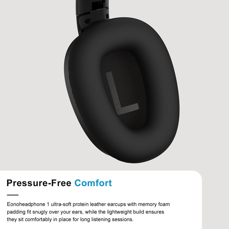 • Pressure-Free Comfort: Eonoheadphone 1 active noise cancelling headphones have ultra-soft protein leather earcups with memory foam padding to fit snugly over your ears. The lightweight build also ensures they’re comfortable for long listening sessions.