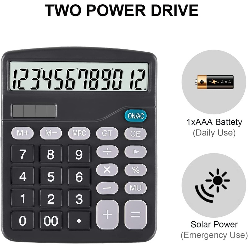 - Easy-to-read calculator with large LCD display and 12-digit display