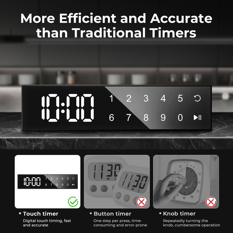 • Intuitive Touch Screen & Magnetic Design: Features a sensitive touch screen for effortless time adjustment and a magnetic back that securely attaches to refrigerators, ovens, or metal surfaces. Perfect as a kitchen timer or visual timer for home/office organization